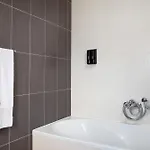 Badeværelsesfaciliteter inkluderer et badekar og en bruser.